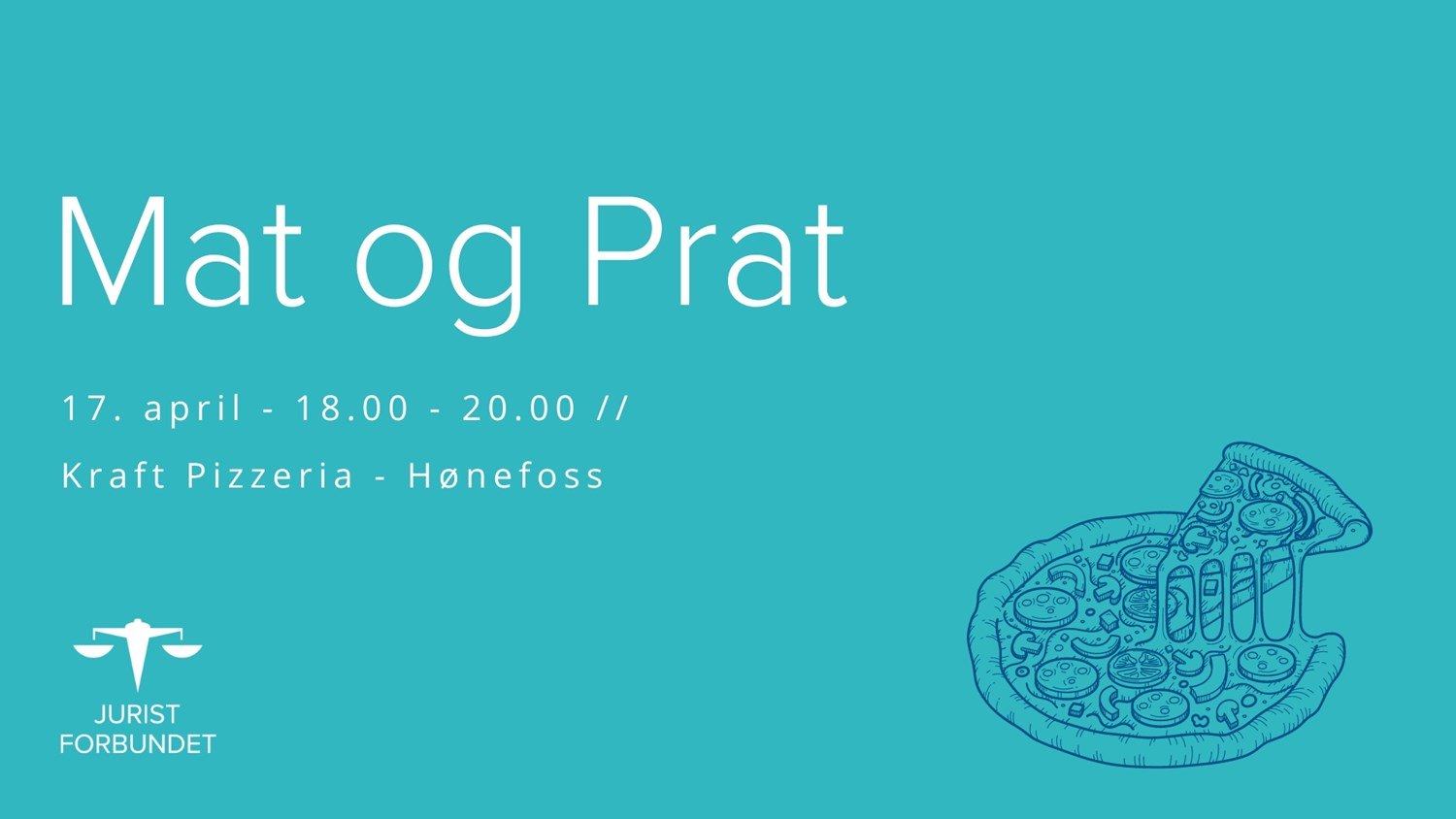 Juristforbundet – Student ønsker USN-studenter velkommen til «Mat & Prat med Jurister» 17.april på Kraft Pizzeria.