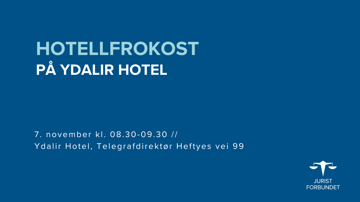 Eksamen begynner å nærme seg for alvor, dagene på sal blir lenger og lenger. Er du lei av å lage frokost hver morgen før du drar på lesesalen? Da har vi gode nyheter til deg! Som medlem i Juristforbundet - Student kan du nyte en gratis frokost på Ydalir Hotel den 07.11. kl 08:30!