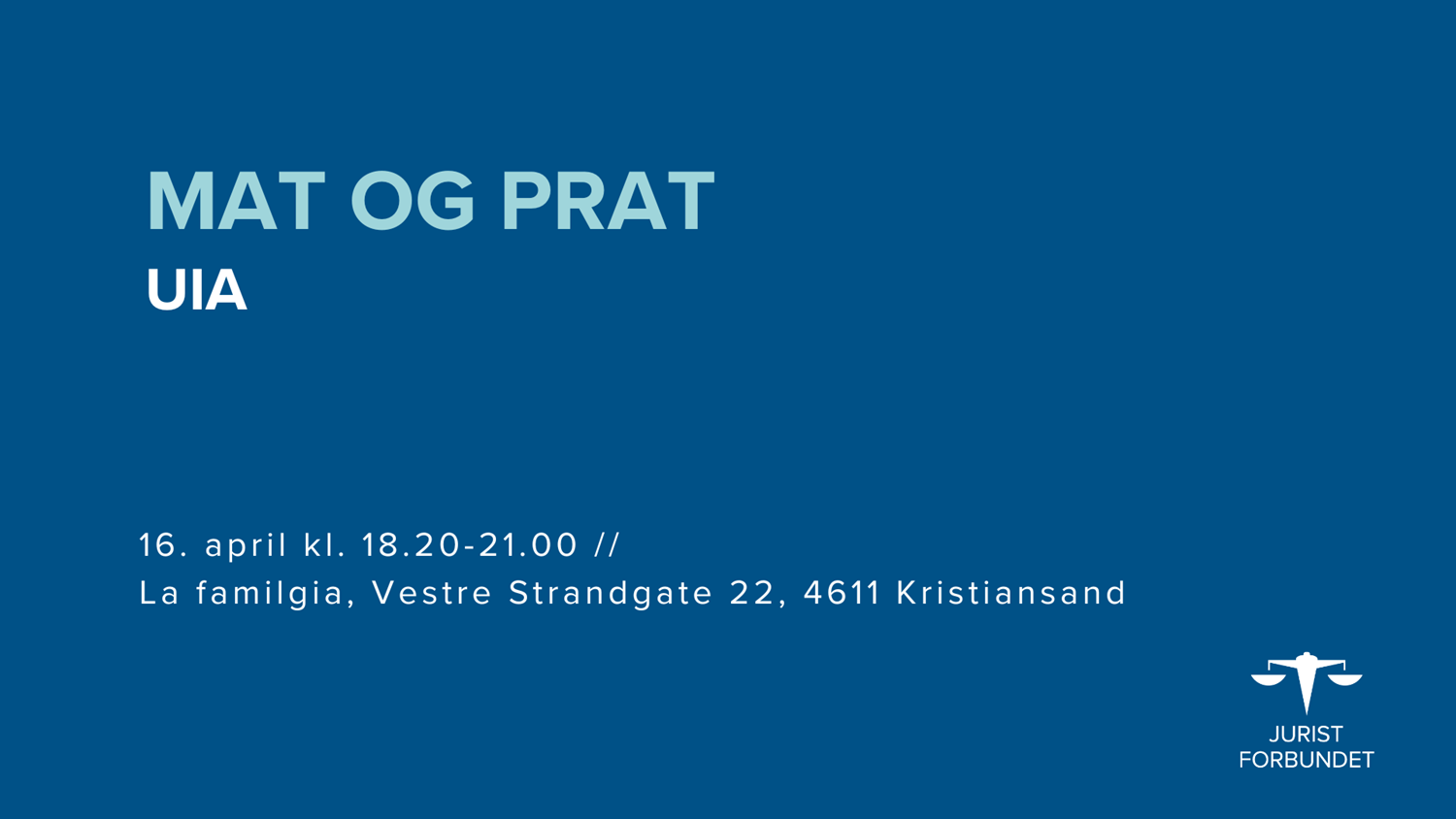 Velkommen til Mat og prat – et sosialt og faglig arrangement i regi av Juristforbundet – Student!