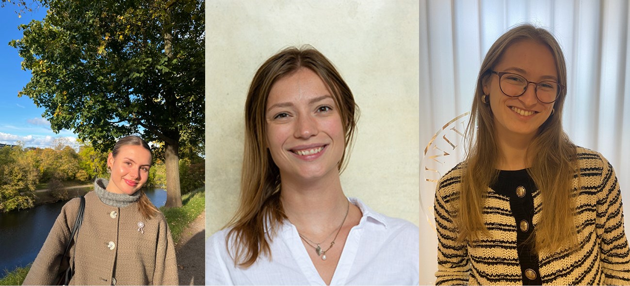 Mottakere av mastergradssstipend for høsten 2024, Julie Zacharias Høibraaten, Margrete Malmgård, Ihne Frisch Selås Sjaavaag (foto: privat)